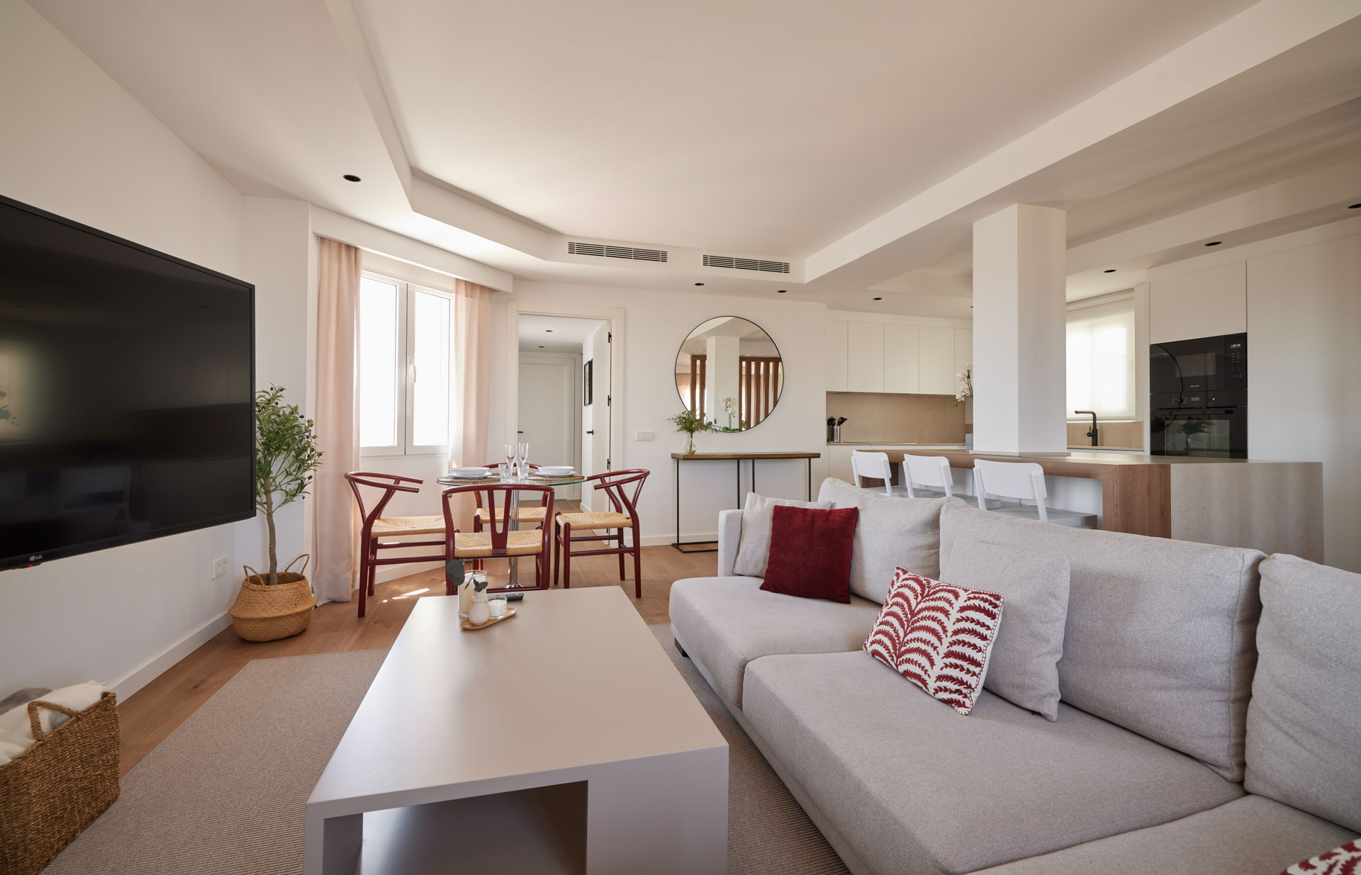 Además de las comodidades básicas como TV, lavadora y lavavajillas, este apartamento también te proporciona una cocina completamente equipada para preparar tus propias comidas. El edificio también cuenta con un portero, proporcionando mayor comodidad y seguridad durante tu estancia.