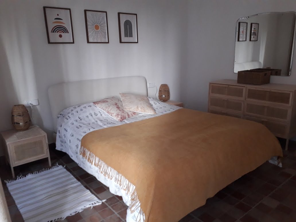- Dormitorio principal con cama doble y pequeño balcón