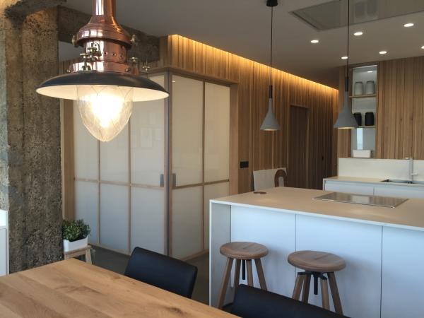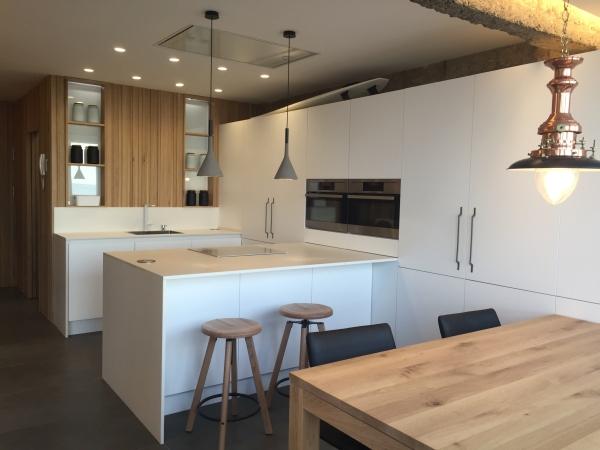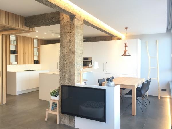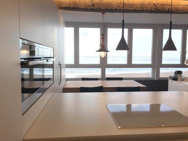 La cocina blanca y abierta ofrece mucha luz para todas tus aventuras culinarias. Notarás cómo todos los electrodomésticos de acero inoxidable se integran perfectamente en los armarios, así como la placa eléctrica blanca. La cocina se funde fluidamente con la sala de estar donde puedes disfrutar de unas vistas espectaculares del océano. Tendrás grandes opciones para elegir: disfrutar de estas vistas o ver una película en el televisor de pantalla plana. Convenientemente, la sala de estar cuenta con un diván para ese invitado inesperado que quiere unirse a ti en todo lo que Zarautz tiene para ofrecer.
