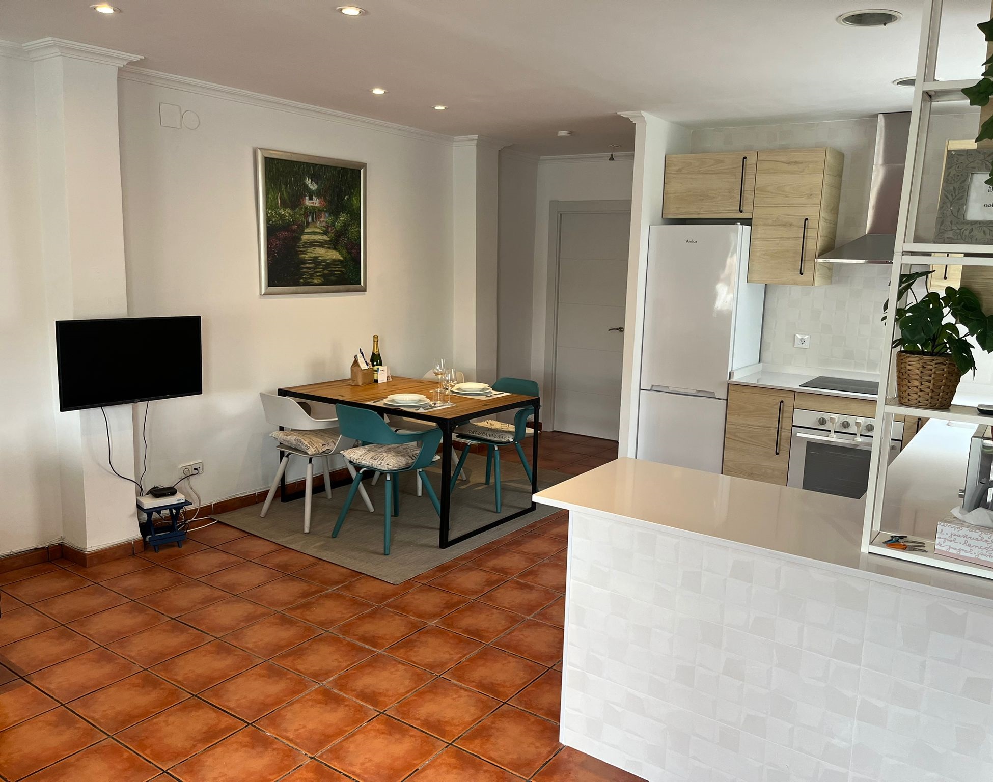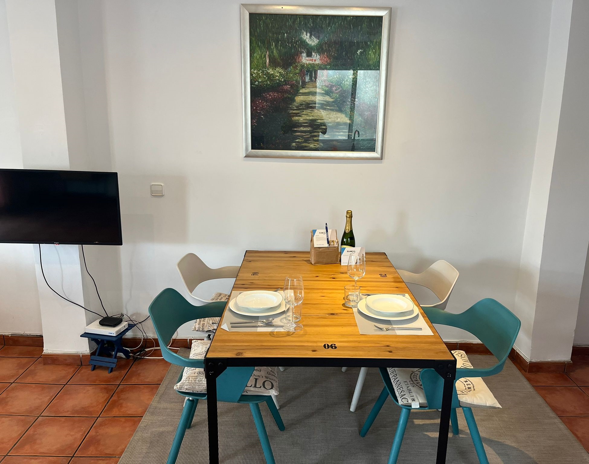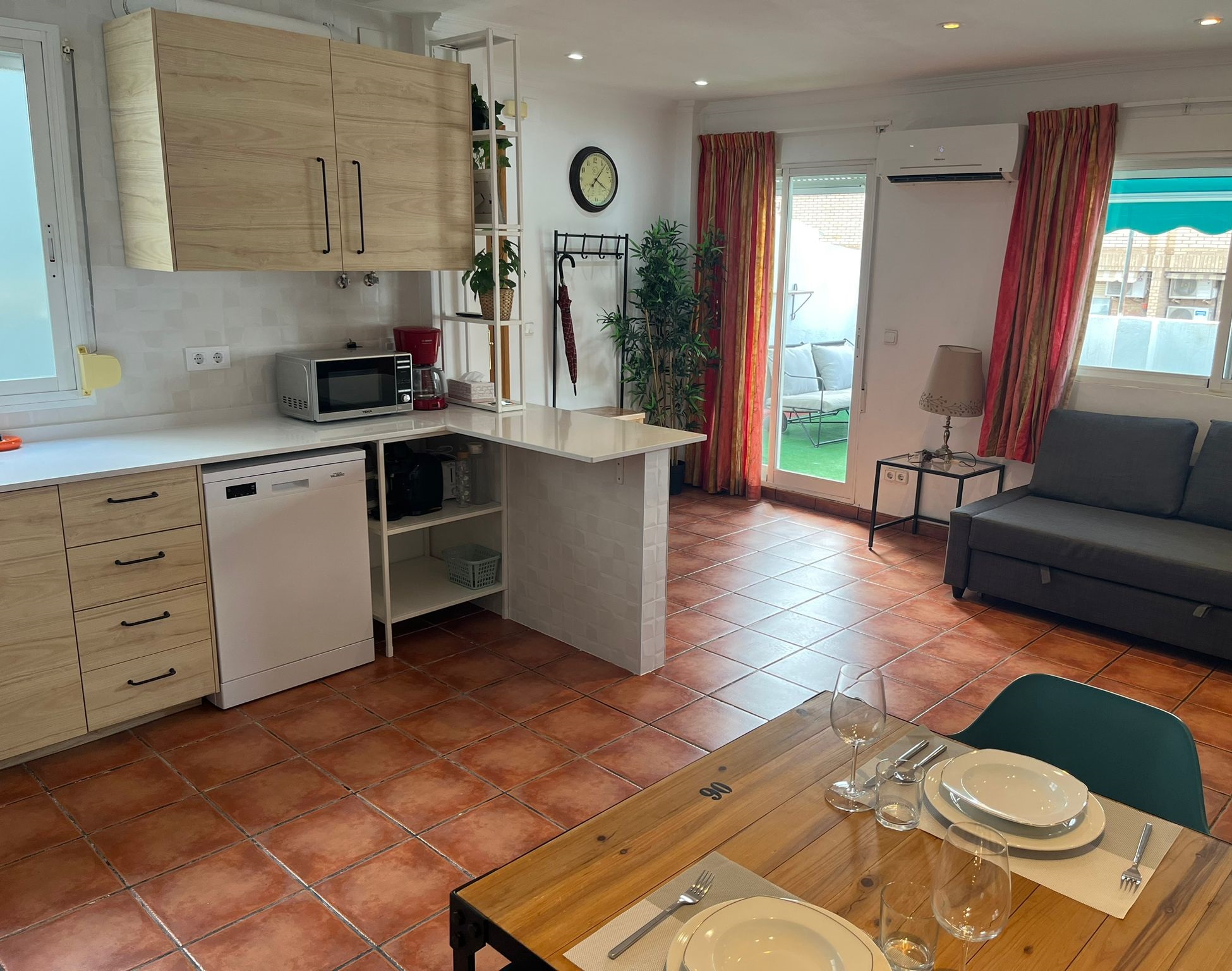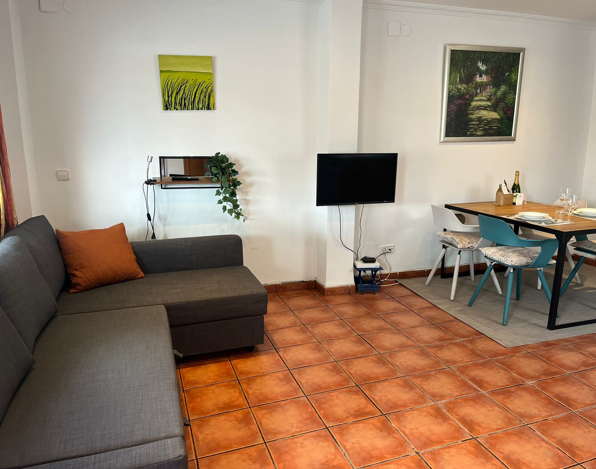 La zona de estar da acceso a la mejor parte del apartamento: la terraza. La terraza está equipada con una mesa y sillas, y tumbonas. Además, la ropa de cama, las toallas y el WIFI también están incluidos.