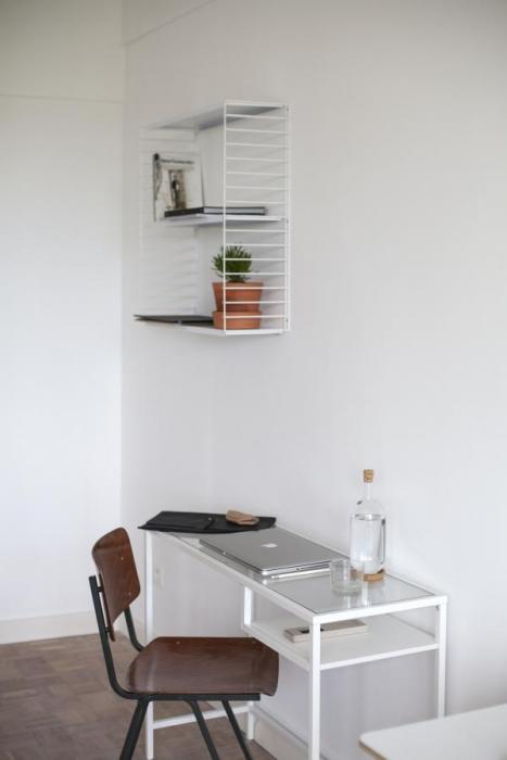 Este estudio amueblado en alquiler en Amberes ofrece hermosas vistas a través de sus grandes ventanales. Estas ventanas son también el factor predominante en la luminosidad del estudio de 35m². El otro factor importante para la luminosidad del lugar, es el carácter abierto. Excepto el cuarto de baño, todo es un espacio abierto. El propietario derribó todas las paredes para crear esta sensación de amplitud. Las paredes y el mobiliario blancos y el auténtico suelo de parqué contribuyen al diseño moderno. Las plantas y la decoración colocadas estratégicamente crean una sensación acogedora. El propietario ha conseguido crear un aire de calma, tranquilidad y eficacia, junto con relajación, comodidad y lujo. Y todo ello con los mejores materiales. Sencillo pero fuerte.