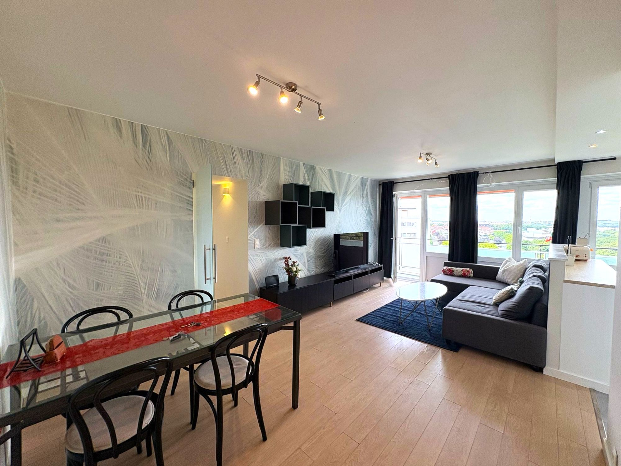 Ubicado en el piso 12 de un edificio bien cuidado en Evere, este piso de 2 dormitorios totalmente equipado es la solución perfecta para profesionales, nómadas digitales y expats que buscan un espacio funcional y cómodo para una reubicación temporal. Con 85 m² y vistas impresionantes de la ciudad desde un balcón privado, este piso combina practicidad con un toque urbano.