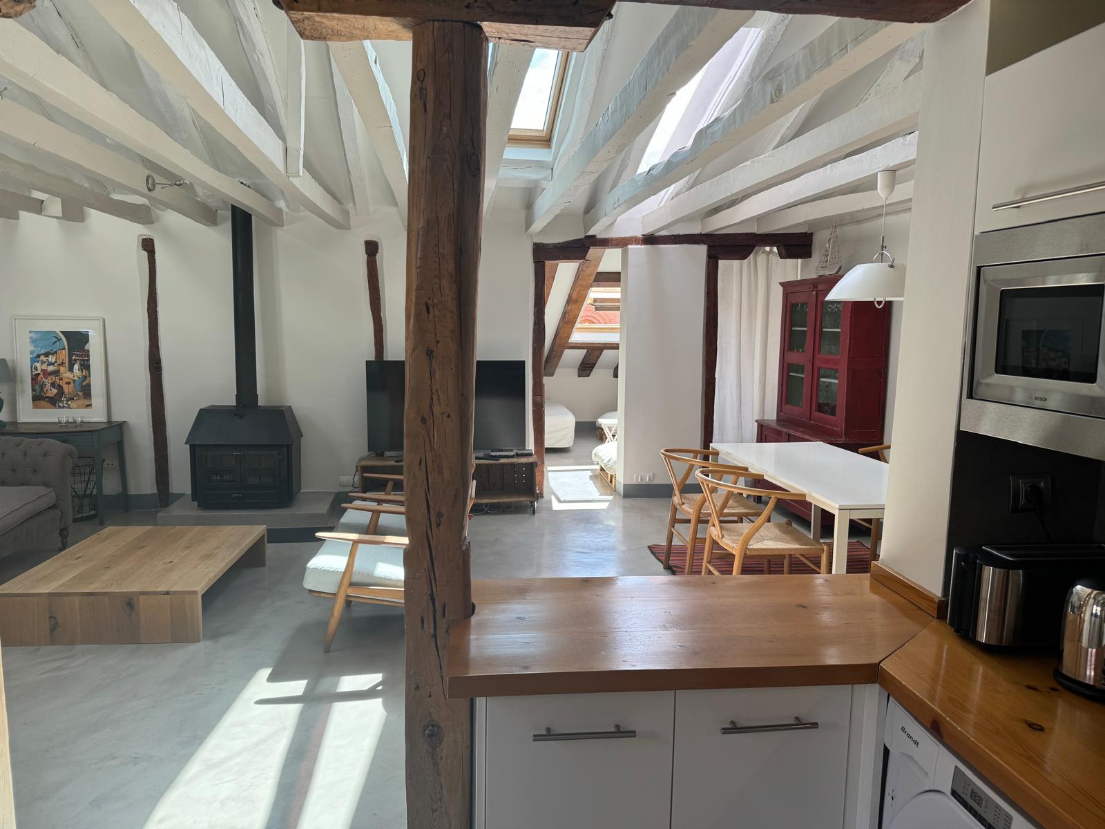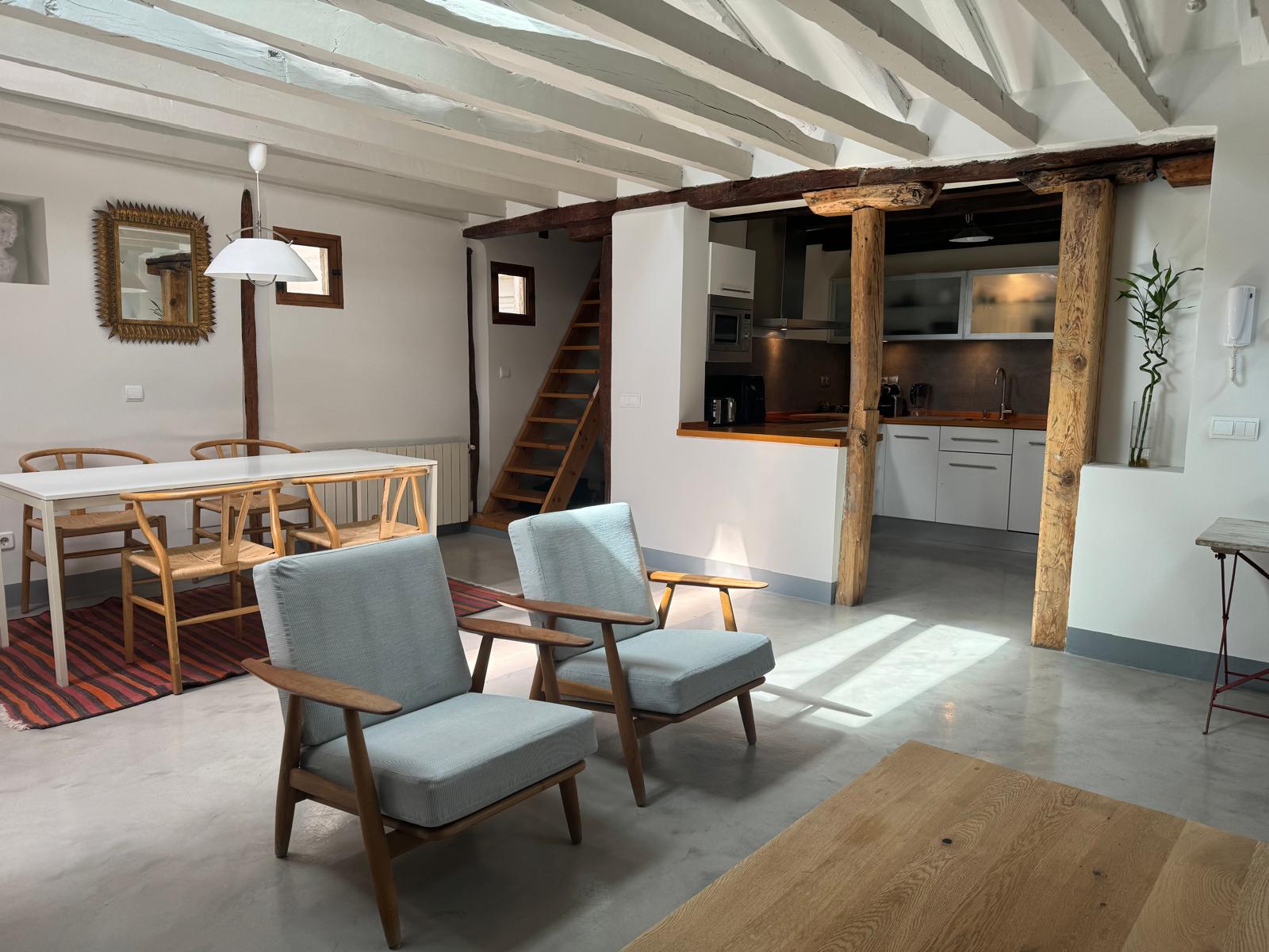 Este apartamento en alquiler a corto plazo en Madrid es realmente un hermoso ático. Ha sido decorado con gusto y estilo, con excelentes calidades, en el corazón de Madrid (Barrio de las Letras / Cortes), en un edificio señorial con portero y ascensor.