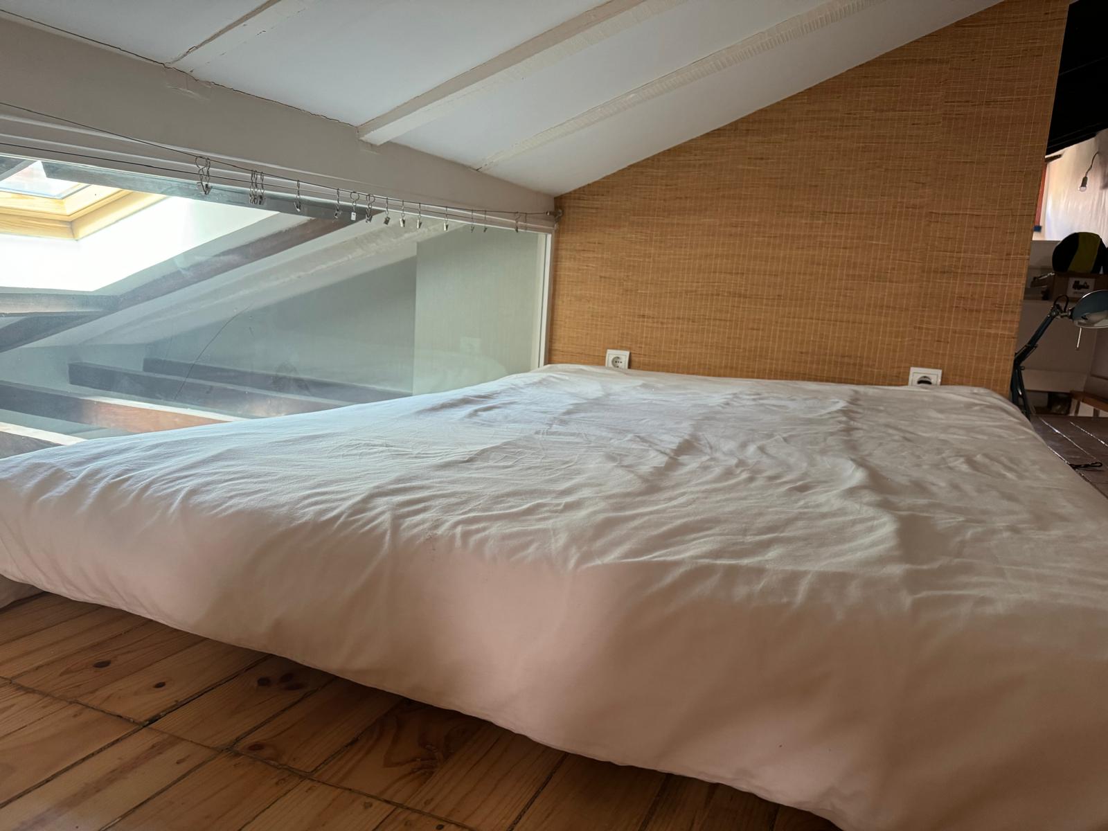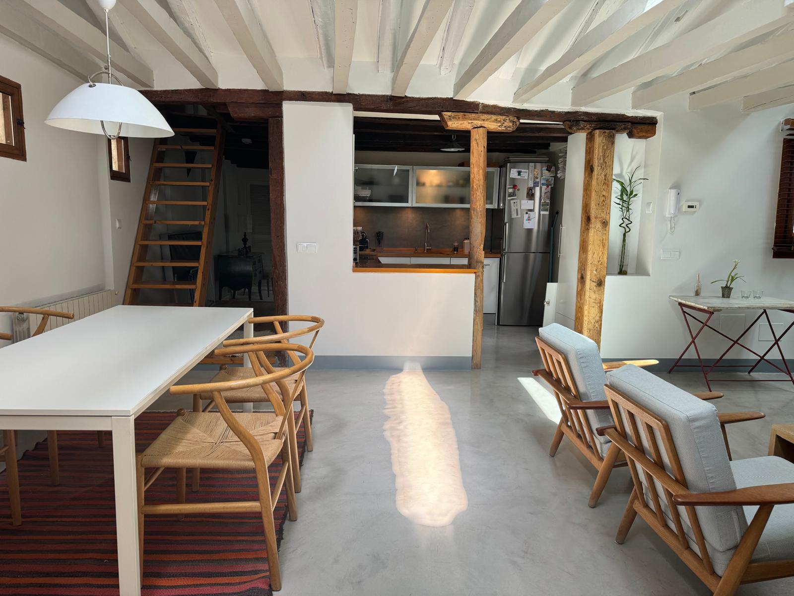 Cuenta con una superficie construida de 100 metros cuadrados. Este apartamento de alquiler a corto plazo en Madrid tiene una sala de estar muy espaciosa con chimenea, sofá y 2 sillones, un escritorio, mesa de comedor, cocina abierta al salón y una pequeña sala de chill-out con un sofá cama doble. Separado por un pasillo, se encuentra el dormitorio principal con cama doble, vestidor y baño en suite con bañera. También cuenta con un ático con una cama doble en el suelo y un aseo (sin ducha). Este apartamento de alquiler a corto plazo en Madrid es realmente una propiedad acogedora e ideal para una persona o pareja, aunque tiene una capacidad máxima de hasta 6 huéspedes.