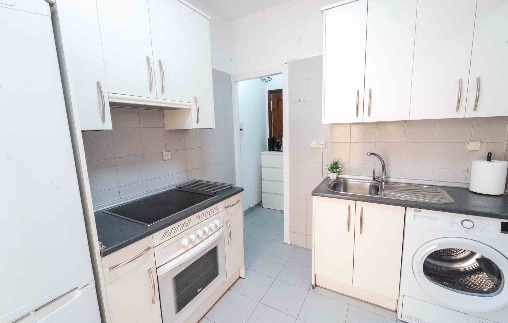 La cocina de Bernabeu - Coliving Madrid by Globexs está totalmente equipada con horno, microondas, hervidor de agua y tostadora, y todo lo necesario para preparar y disfrutar de tus comidas. A continuación está la zona de lavandería con lavadora y secadora. Por supuesto, tienes la aspiradora, plancha y tabla de planchar.