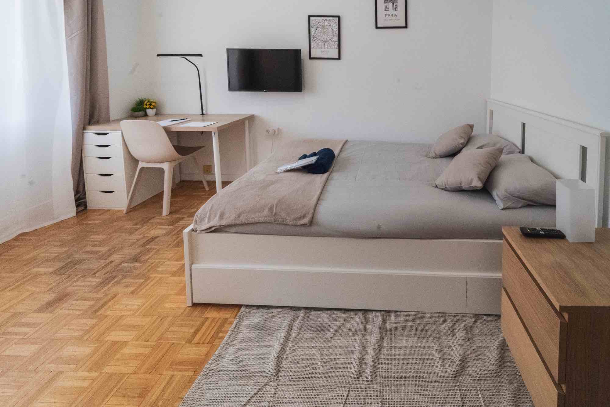 Coliving Madrid by Globexs (edificio Bernabeu) está situado en la zona del Bernabeu, cerca del Paseo de la Castellana, en el distrito de Chamartín. Las calles Concha Espina, Padre Damián y Rafael Salgado rodean los dominios blancos. En sus inmediaciones se encuentran los edificios más emblemáticos de la capital, que constituyen el "Manhattan de Madrid". Este coliving de la marca Globexs es perfecto para nómadas digitales que necesitan un bonito apartamento para vivir y trabajar pero no todo para ellos. En este Coliving Madrid by Globexs, hay 3 dormitorios cada uno con su propia llave para mayor privacidad, solo se permite una persona por dormitorio. Puedes elegir entre 3 cómodos dormitorios, aquí tienes los detalles del dormitorio Paris.