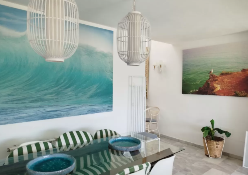 Disfruta de impresionantes vistas panorámicas al mar desde la amplia terraza y los balcones superiores, donde la elegancia se encuentra con la decoración contemporánea. La piscina comunitaria te invita a relajarte y tomar el sol, convirtiéndose en el lugar ideal para descansar después de un día en la playa. La cocina completamente equipada permite preparar comidas sin esfuerzo, mientras que las amplias áreas de estar y comedor ofrecen el telón de fondo perfecto para relajarse o entretenerse.