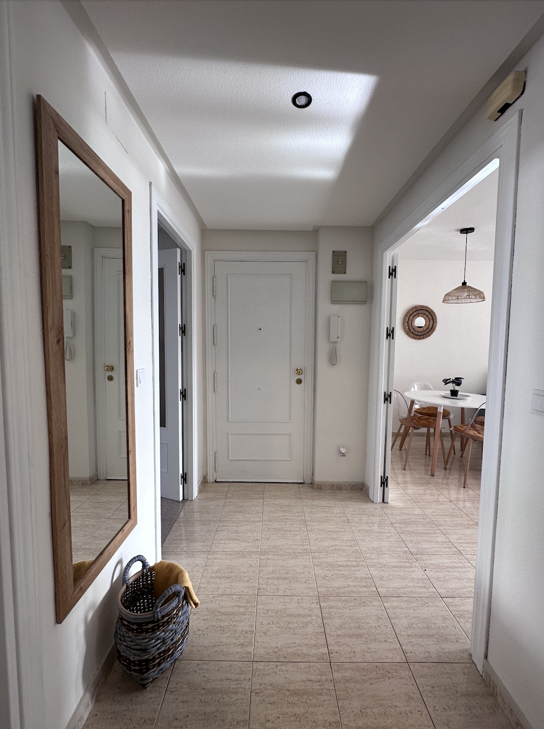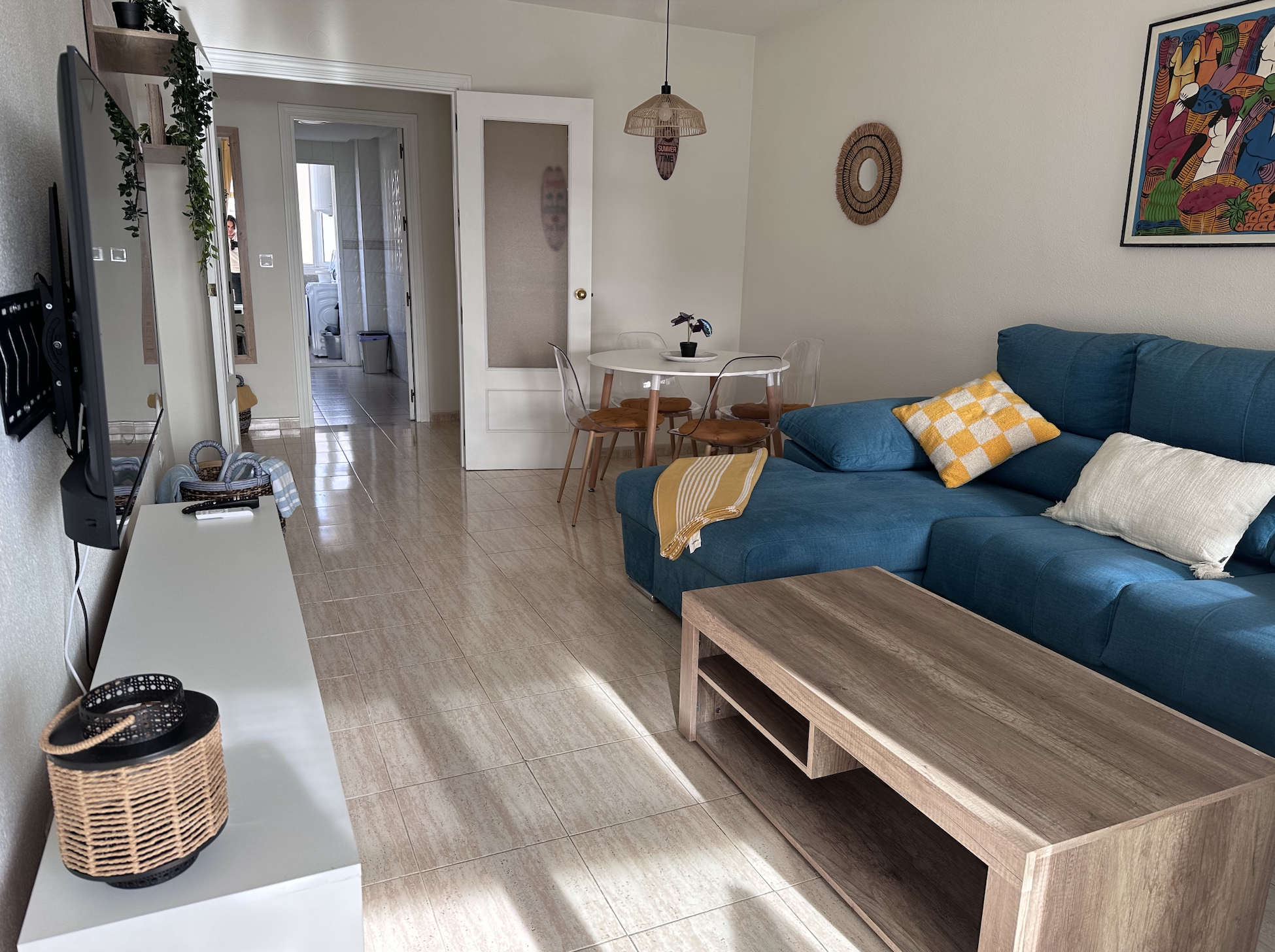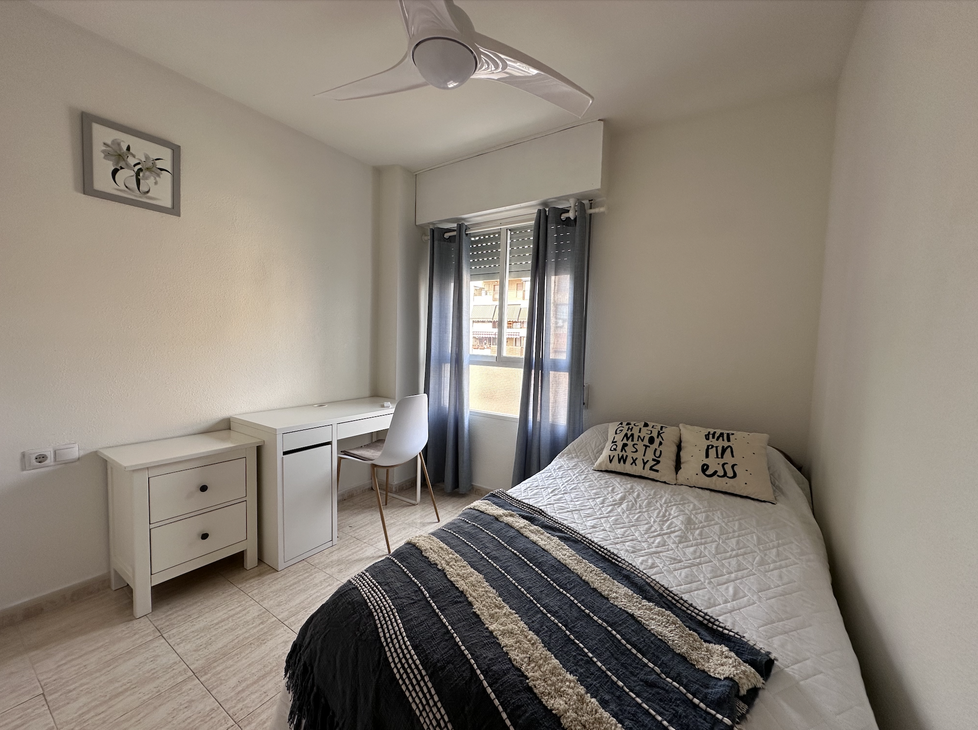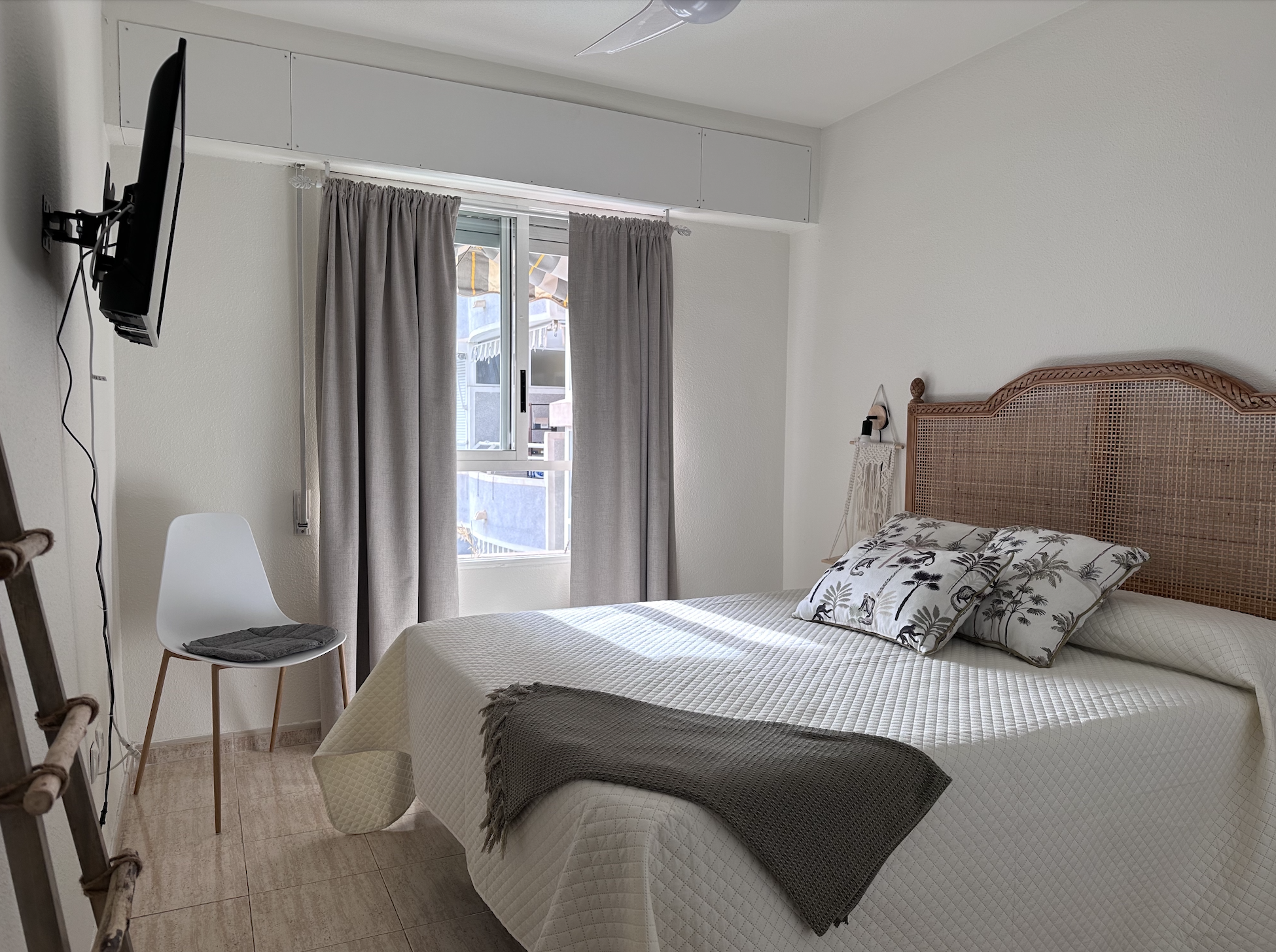 Ubicado en la encantadora zona de San Juan en Alicante, este apartamento totalmente amueblado de 2 dormitorios es el lugar perfecto para expats, profesionales de negocios y nómadas digitales que buscan vivienda temporal cerca de la playa. El apartamento ofrece un ambiente acogedor y fresco, ideal para aquellos que buscan un refugio tranquilo cerca de la Playa de la Almadraba. Con ventanas en ambas orientaciones, el apartamento está diseñado para que el aire circule, manteniéndolo fresco y ventilado. Cuenta con una cómoda sala de estar con sofá y televisión, así como una cocina totalmente equipada con electrodomésticos modernos como nevera, microondas, horno y cafetera. El apartamento también cuenta con un dormitorio principal con cama doble y un segundo dormitorio con cama individual y escritorio, lo que lo hace ideal para trabajar o relajarse.