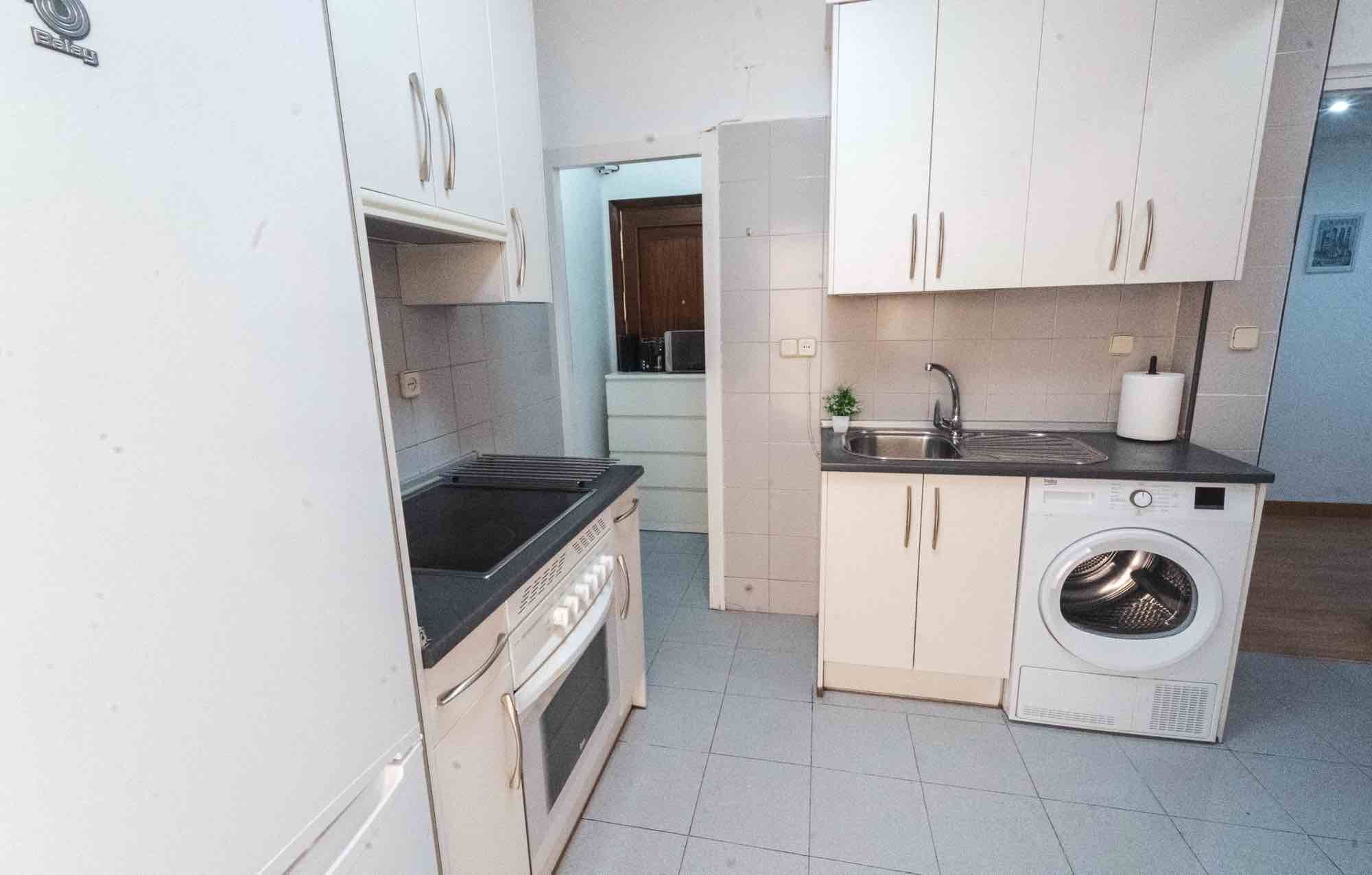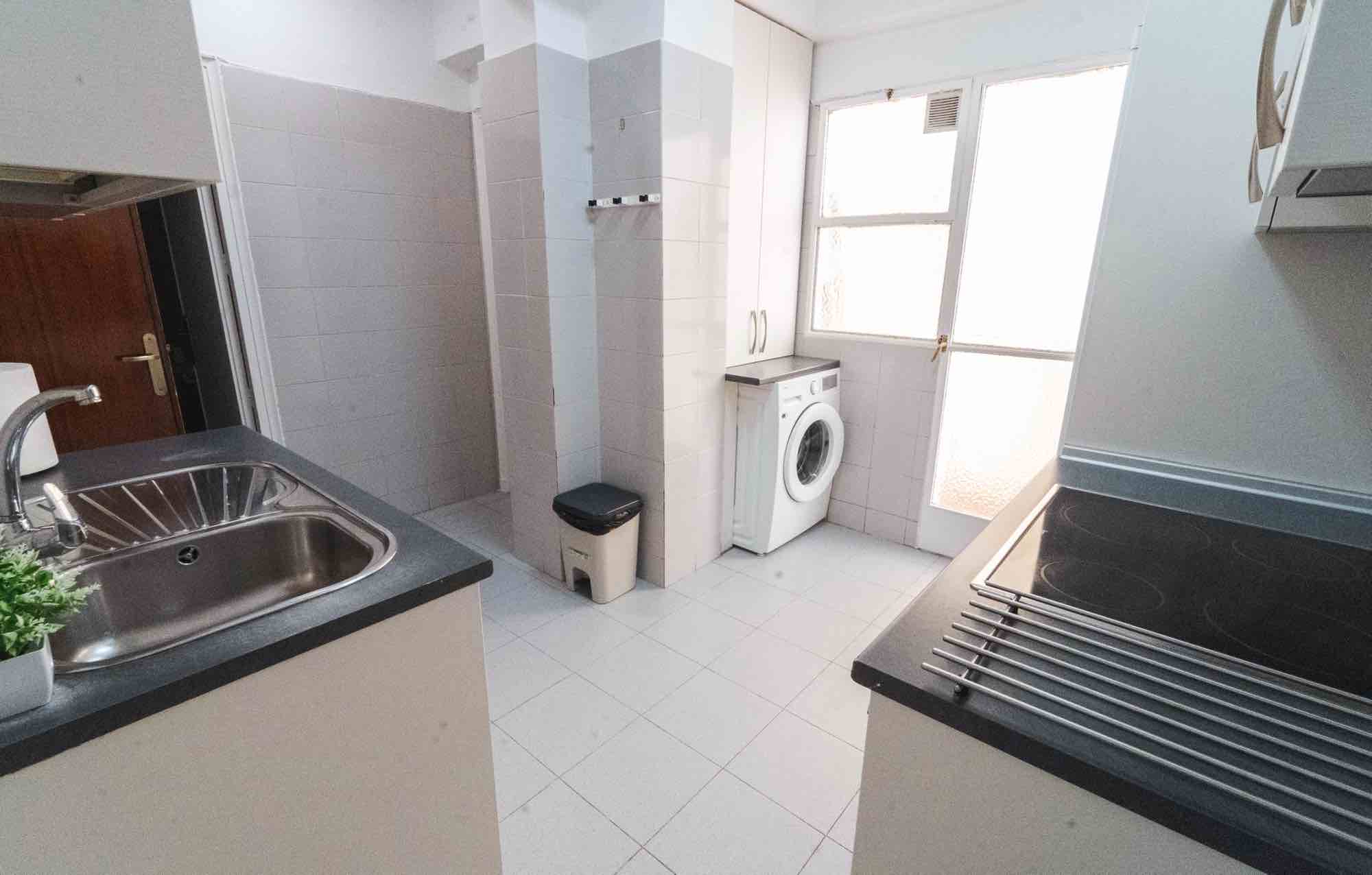 La cocina de Bernabeu - Coliving Madrid by Globexs está totalmente equipada con horno, microondas, hervidor de agua y tostadora, y todo lo necesario para preparar y disfrutar de tus comidas. A continuación está la zona de lavandería con lavadora y secadora. Por supuesto, tienes la aspiradora, plancha y tabla de planchar.