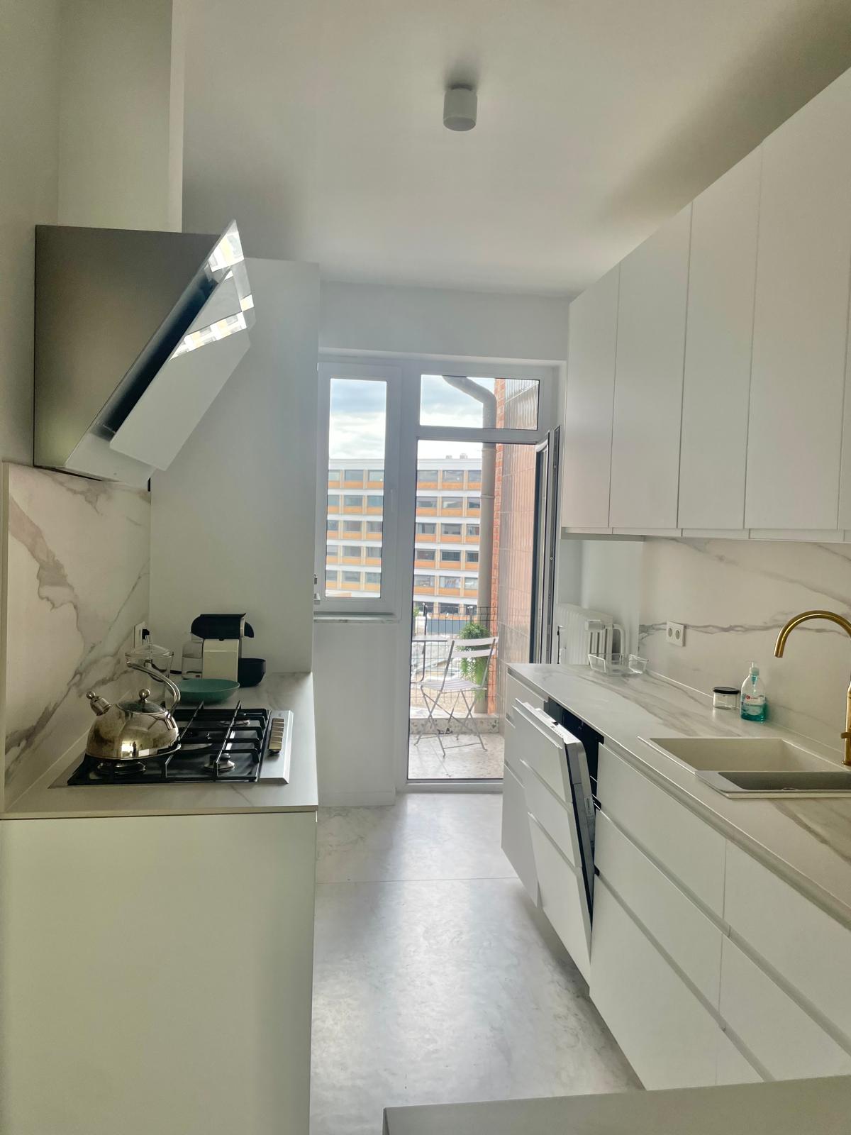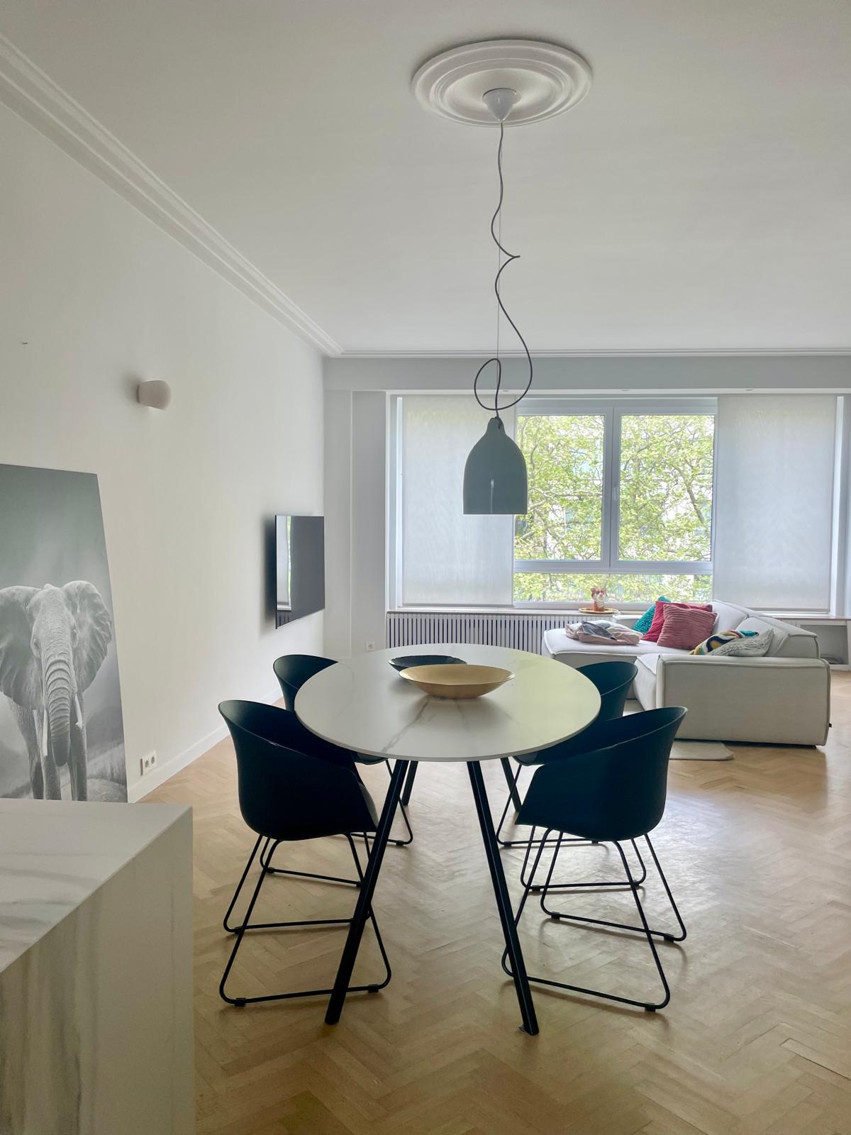 Este piso renovado de 2 dormitorios en la quinta planta de un edificio seguro en Mechelsesteenweg es ideal para expats, profesionales de negocios y nómadas digitales que buscan alojamiento temporal en el centro de Amberes. Totalmente amueblado y modernizado en 2020, ofrece tanto funcionalidad como confort, con más de 100m² de espacio luminoso y bien distribuido.