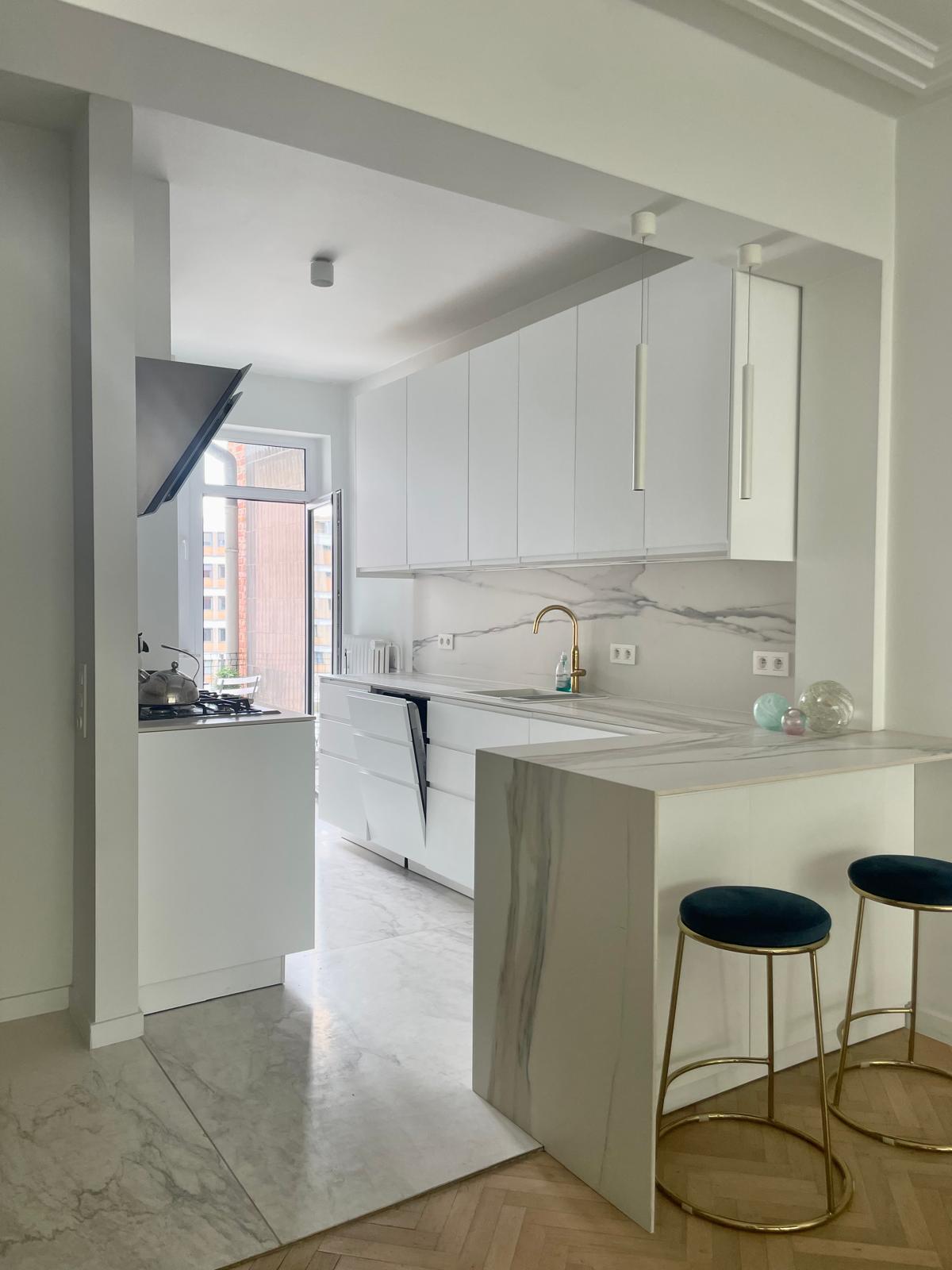El piso cuenta con un salón espacioso con suficiente espacio para un gran sofá y mesa de comedor, ideal tanto para trabajar desde casa como para relajarse después de un día ocupado. La cocina está totalmente equipada con cocina de gas de 5 fuegos, horno, microondas, nevera, congelador y amplias opciones de almacenamiento.