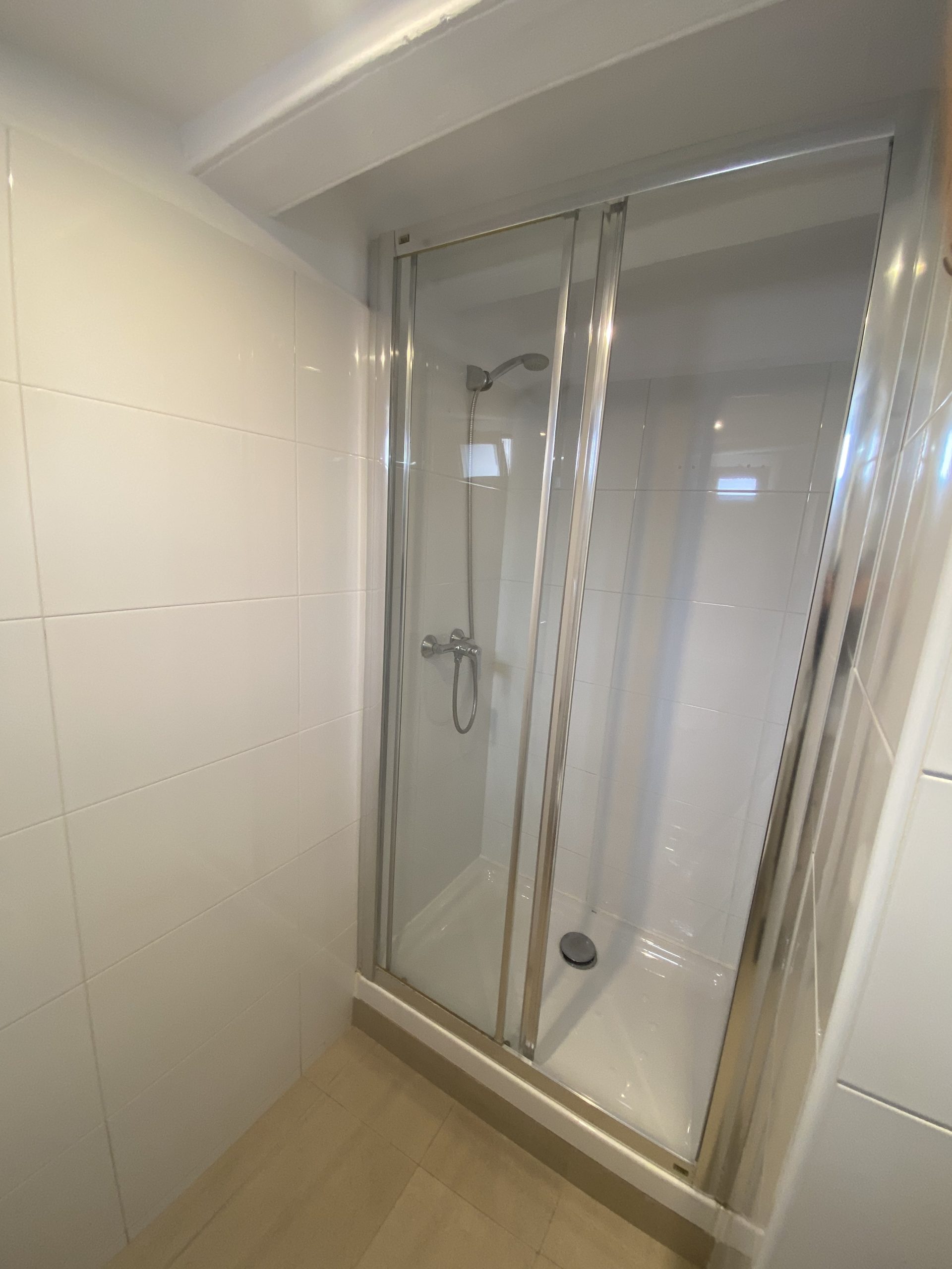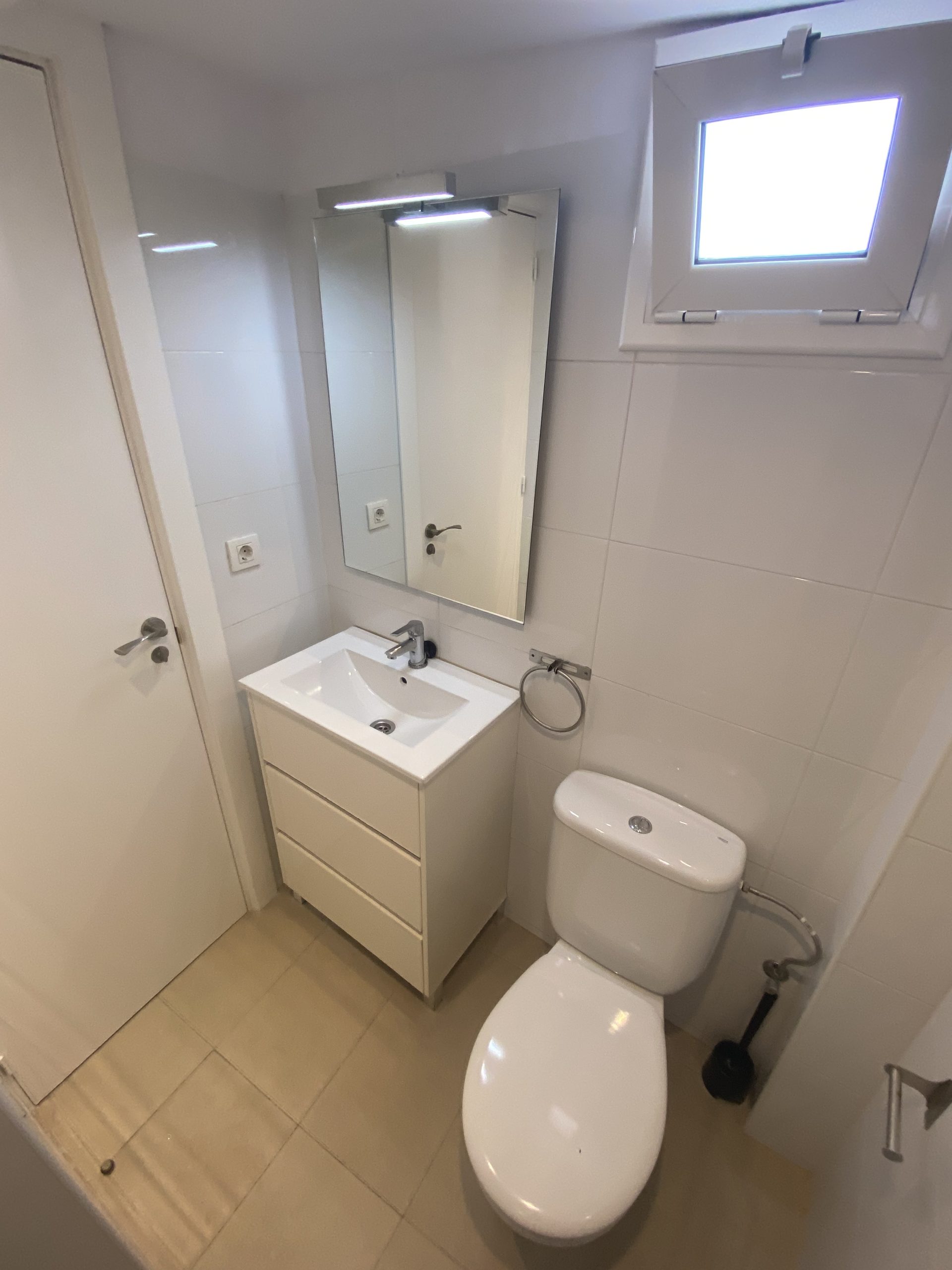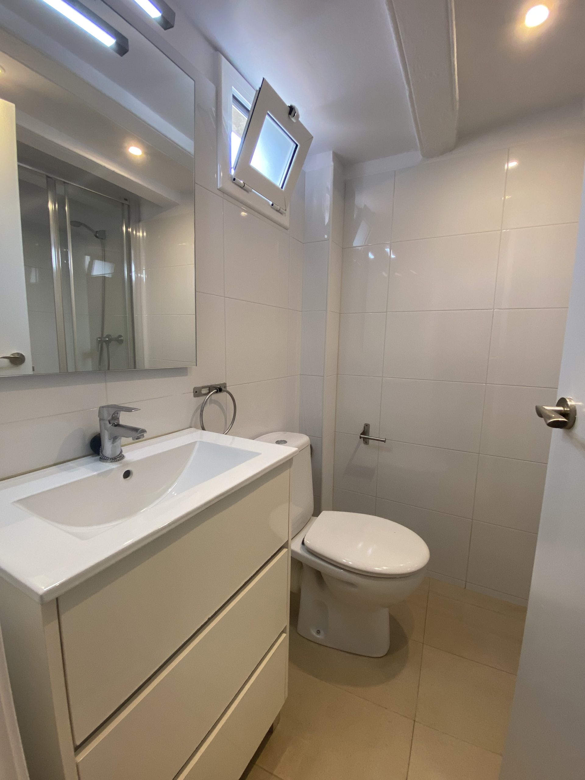 El apartamento en alquiler en Barcelona también tiene un baño con ducha, donde puedes refrescarte y relajarte después de un día lleno de actividades.