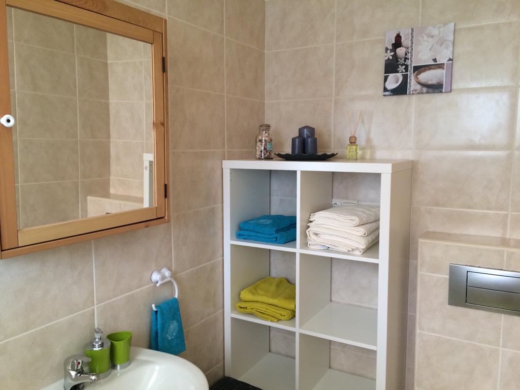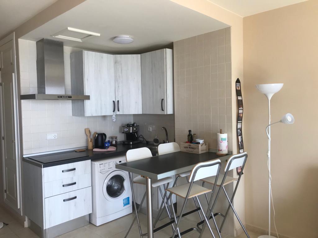 La cocina abierta está completamente equipada con todo lo que puedas necesitar. Es el momento perfecto para mostrar tus habilidades culinarias y deleitarte con la cocina española. Después, puedes disfrutar tus comidas en la mesa del comedor, que se encuentra en la misma área que la cocina. Ideal para pasar tiempo juntos con tus seres queridos. Aquí también encontrarás una lavadora, que siempre es útil.