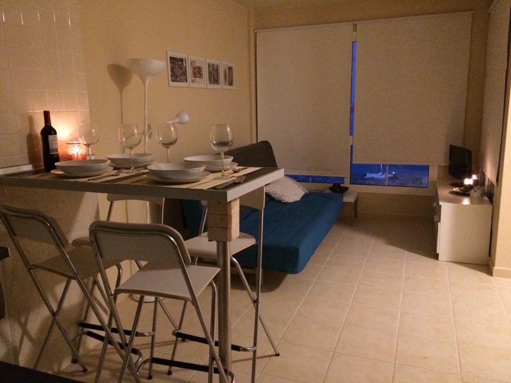La sala de estar es luminosa y cuenta con un cómodo sofá cama y, por supuesto, una televisión. Sin embargo, no necesitarás televisión, ya que tendrás una vista increíble sobre la playa. Despertarás cada día con la vista de un impresionante amanecer. La ubicación y las vistas de este apartamento son excepcionales, en un parque natural.