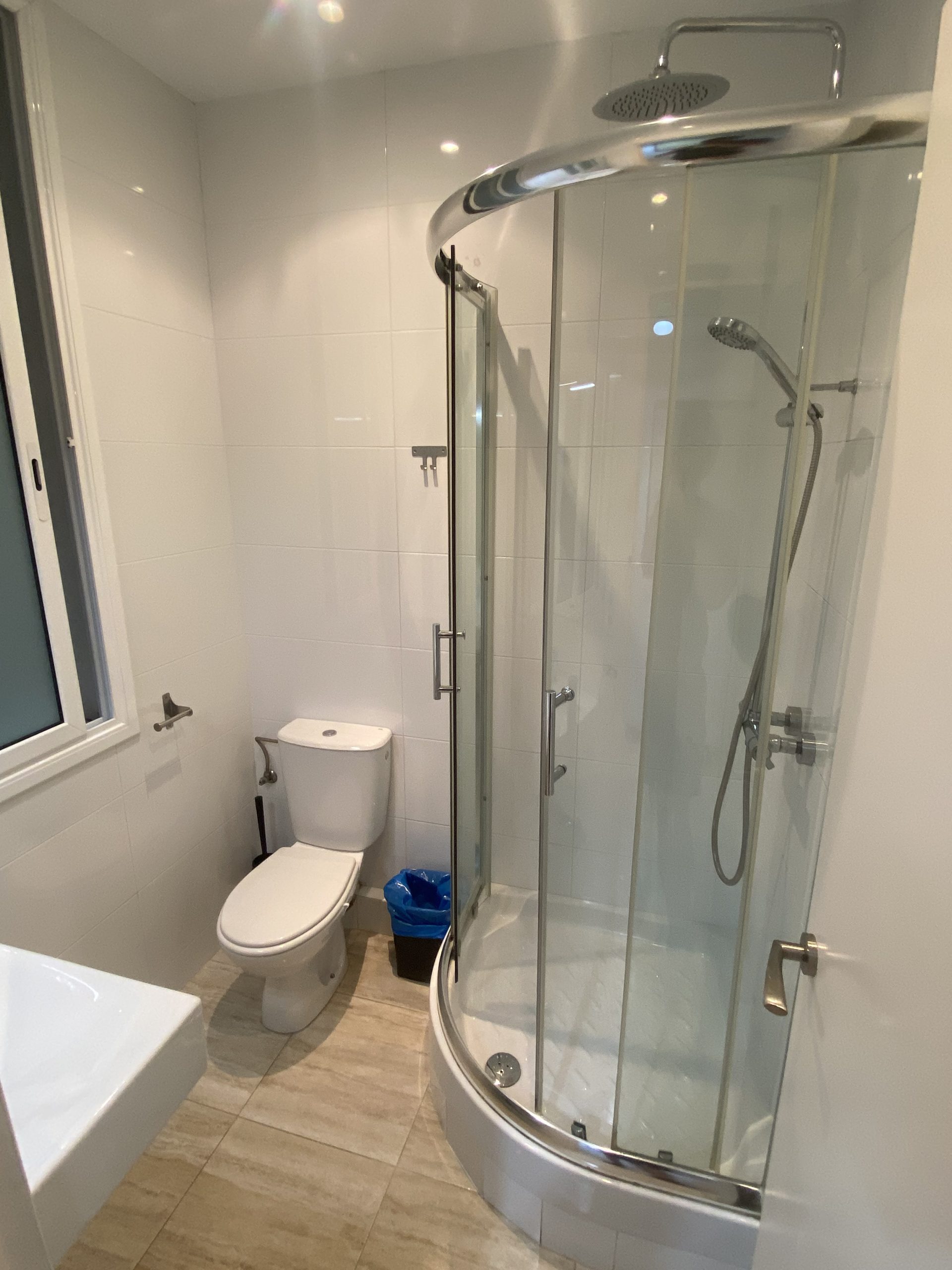 El piso de alquiler en Barcelona también tiene un baño con ducha, donde puedes refrescarte y relajarte después de un día lleno de actividades.