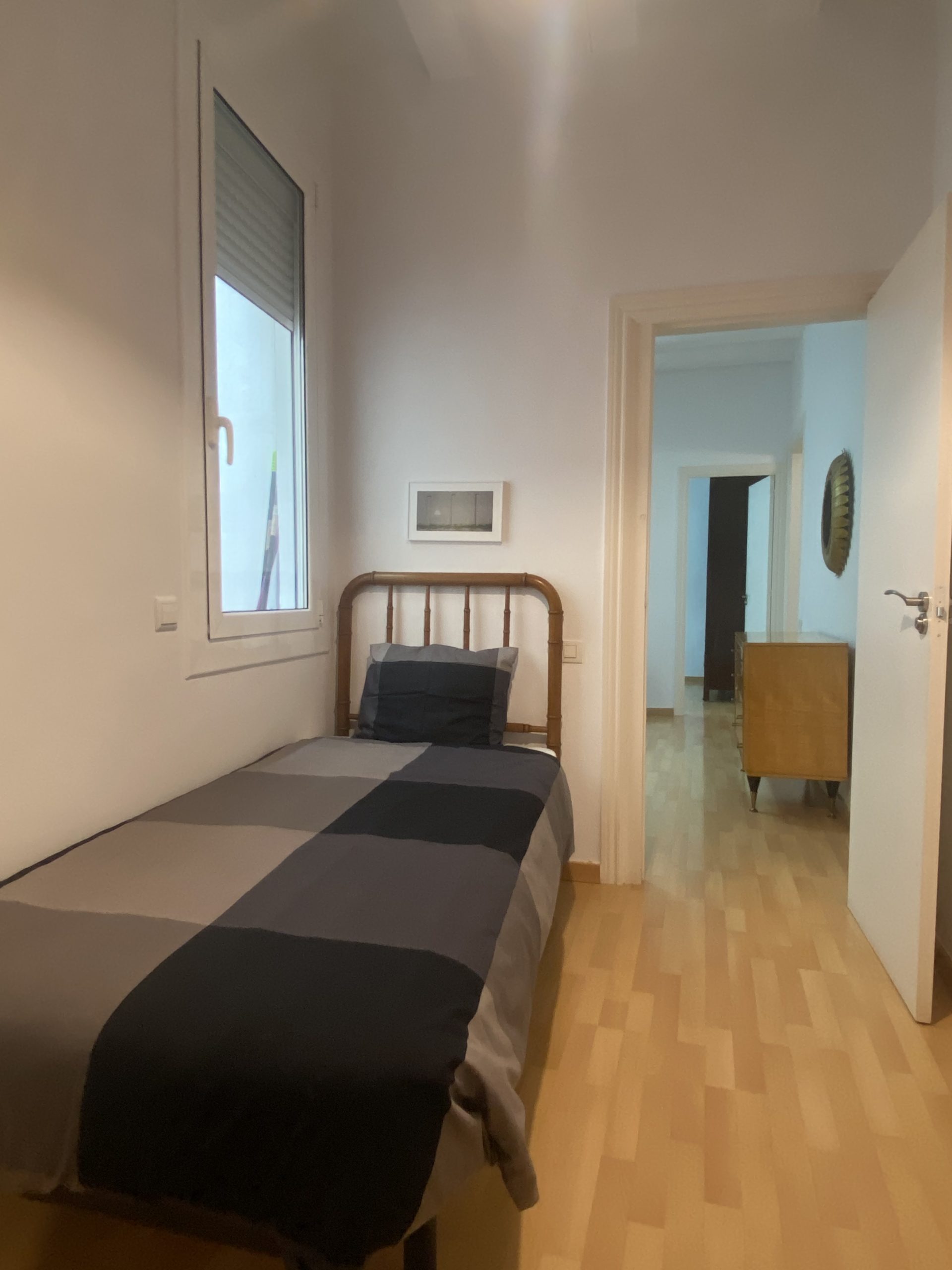 Este piso de alquiler en Barcelona es un acogedor apartamento de 55 m2 que ofrece un espacio cómodo y funcional para disfrutar de una estancia agradable en la ciudad. Con una distribución inteligente, cuenta con dos dormitorios, uno equipado con cama doble y otro con cama individual. Ambas habitaciones están decoradas con buen gusto y proporcionan un ambiente tranquilo y relajante para descansar después de un día explorando la ciudad.