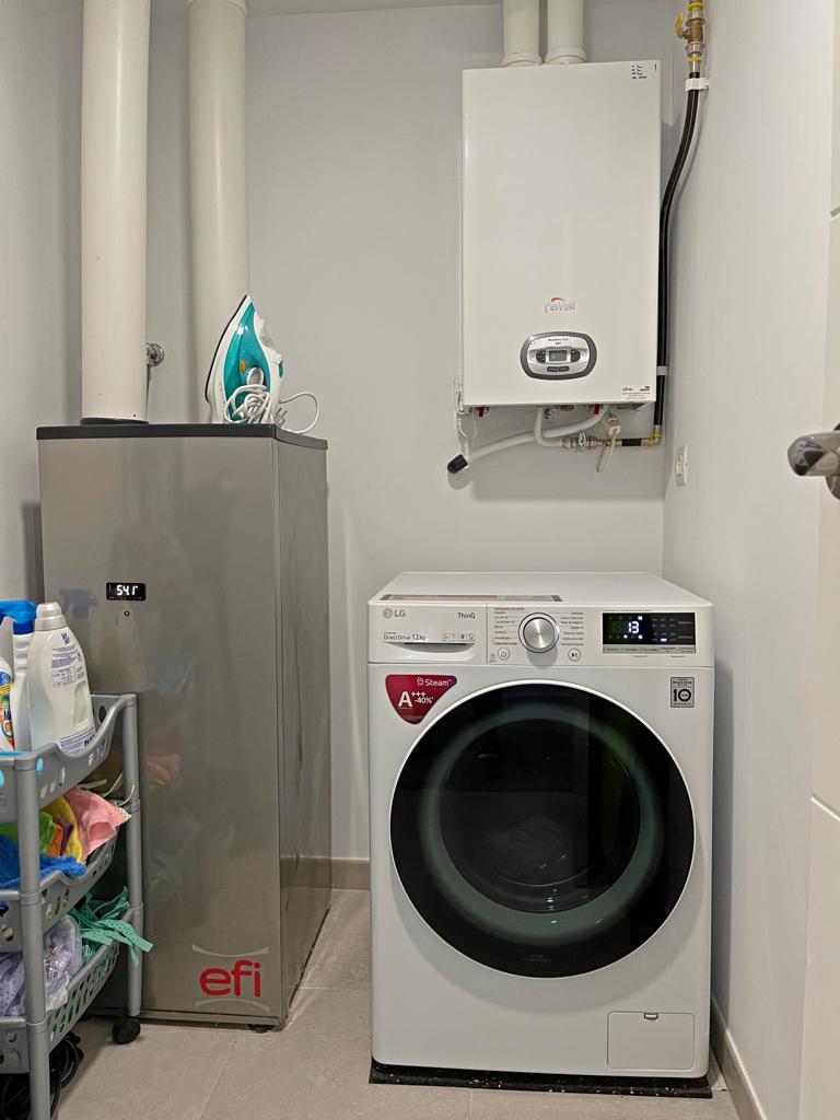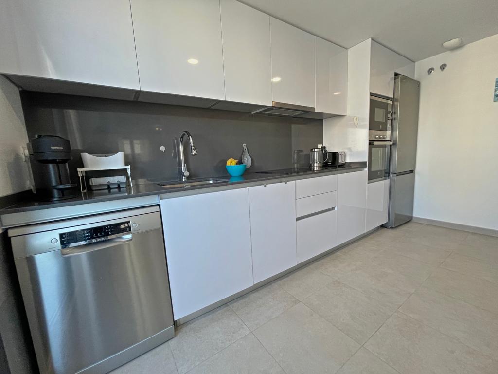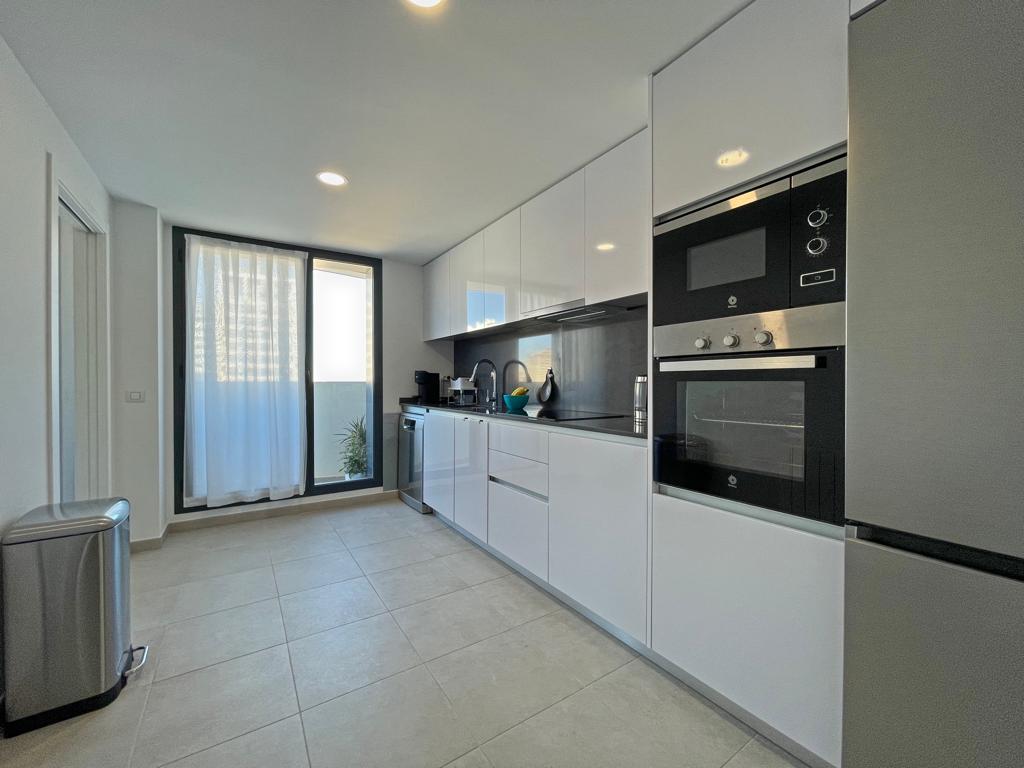 La cocina está completamente equipada y tiene todo lo que puedas necesitar. ¡Es hora de poner en práctica tus habilidades culinarias! Quizás puedas aprovechar tu tiempo aquí para aprender algunas recetas típicas españolas. Desde la cocina también tienes acceso directo a la terraza de este lugar. La terraza viene con una mesa y sillas y tiene una vista increíble sobre la ciudad, hacia el puerto.